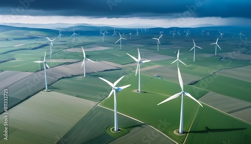 world wind day with big wind turbines are generating the electricty behind the wnd turbines a beautiful scene of nature