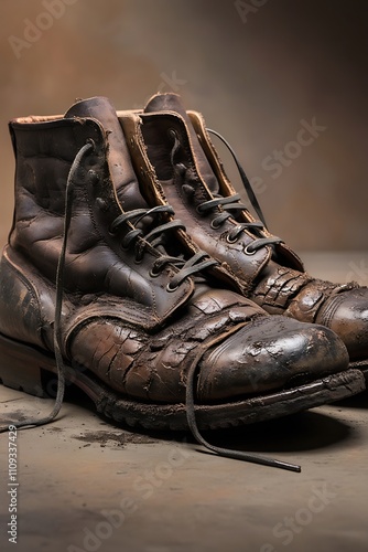 boot, shoe, leather, worn, weathered, used, old, vintage, retro, rustic, rugged, dirty, muddy, distressed, damaged, broken, cracked, well-worn, character, history, story, time, memory, nostalgia, sentimental, comfort, durability, craftsmanship, hand-made, handcraft, artisan
