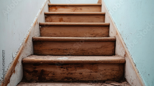 staircase, wooden, worn, dirty, dusty, neglected, step, interior, home, architecture, light blue, passage, time, weathered, old, residential, flooring, interior design, rustic, vintage, home decor, texture, detail, ascending, empty, space, clean, maintenance, repair, peeling, paint, atmosphere, ambience, natural light, shadow