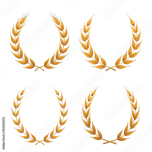Wreath wheats ears icons and rice seed logo design elements set