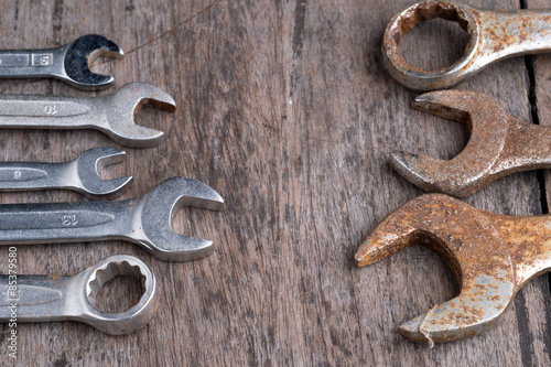 Wrench on a desk with nuts and bolt