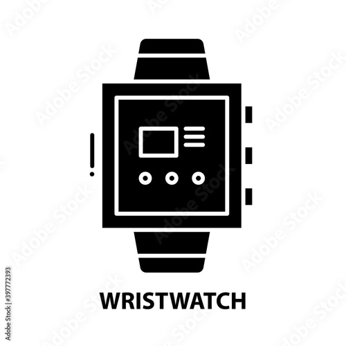 wristwatch icon, black vector sign with editable strokes, concept illustration