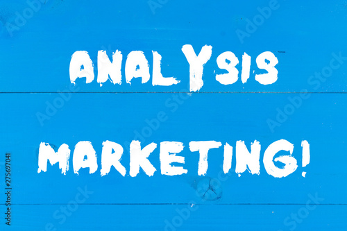 Writing note showing Analysis Marketing. Business concept for Quantitative and qualitative assessment of a market Wooden texture old vintage background horizontal boards holes