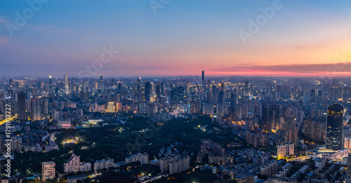 Wuhan Skyline at Sunset - Aerial View with Illuminated Urban Cityscape