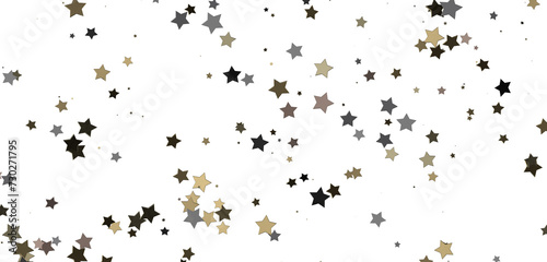 XMAS Banner with golden decoration. Festive border with falling glitter dust and stars.