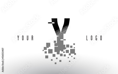 Y Pixel Letter Logo with Digital Shattered Black Squares