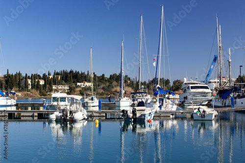 Yachts and sail boats reflected in a Marina