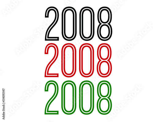 Year 2008 set black, blue and green outline. Vector with year and white background.