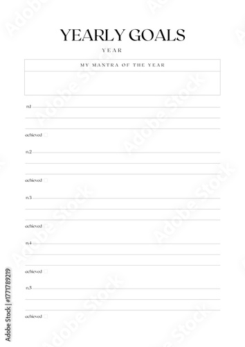 Yearly Goals Planner Template On Two Pages | Elegant Minimalist Productivity Planner - 1