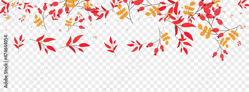 Yellow Berries Background Transparent Vector. Foliage September Frame. Burgundy Herb Landscape. Sale Design. Leaf Banner.