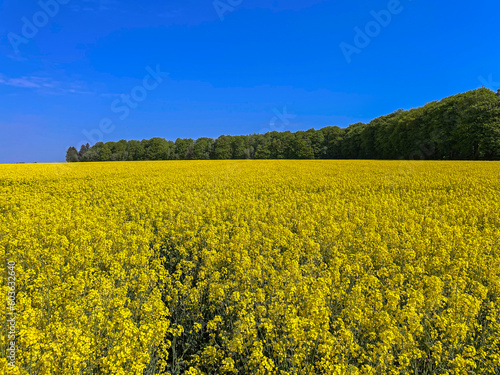 Yellow blossom of a rapeseed field in bloom in the northern Germany in springtime
