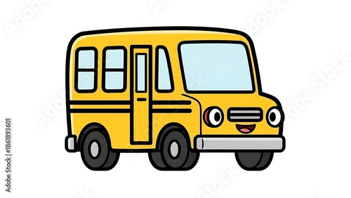 Yellow Cartoon School Bus Illustration.