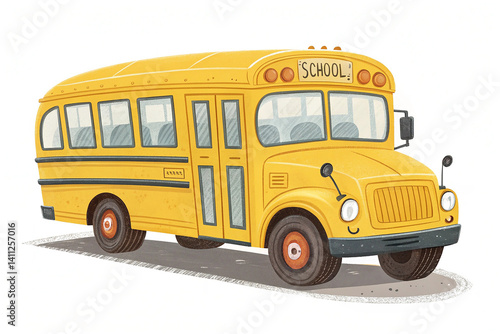 Yellow cartoon school bus. School bus isolated on white. Vector cartoon