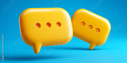 chat, bubble, message, icon, communication, conversation, yellow, speech, symbol, dialogue, talk, text, blue background, three-dimensional, cyberspace, technology, dialogue, comment, forum, graphic, online, support, network, modern, design, concept, bright, pop art, visual, discussion, feedback, interaction