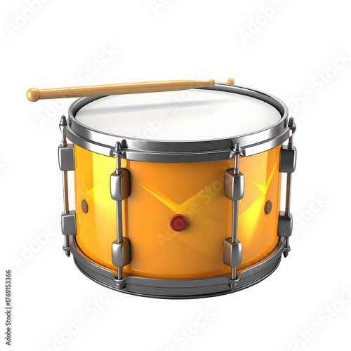 drum, percussion, instrument, music, yellow, stick, chrome, metal, rythm, beat, sound, band, orchestra, musical, play, entertainment, performance, culture, art, object, isolated, studio, shot, background, black, circle, cylindrical, shiny, light, shadow, wooden, brown, beige, hardware, metallic, bright, vibrant, stage, concert, audio, noise, kit, set, equipment, detail, closeup, rendering, design