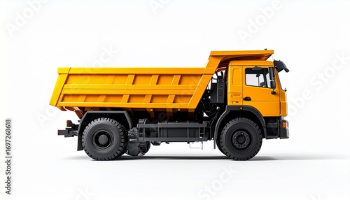 truck, dump, yellow, vehicle, transport, construction, heavy, machinery, equipment, industry, industrial, dump truck, cargo, delivery, logistic, mining, quarry, building, site, work, engine, wheel, tire, cab, body, metal, side, profile, isolated, white, background, transportation, haulage, material, excavation, engineering, automotive, commercial, heavy duty, offroad, powerful, accurateness, robust, hauling