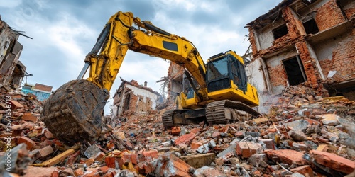 shoveling, demolition, construction, machinery, debris, building, brick, heavy equipment, industrial, construction site, dismantling, destruction, urban, infrastructure, mechanical, tool, engineering, worksite, transportation, safety, renovation, industry, architecture, urban development, challenge, labor, modernization, project, transition, landscape, environmental impact, heavy duty, process, manpower, city landscape, construction industry
