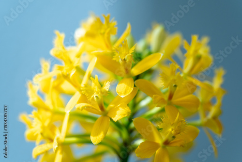 yellow flower on blue background
