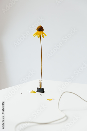 blossom, cable, decay, flower, minimal, plant, still life, summer, white, wildflower, yellow