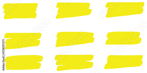Yellow glowing doodle scribble background set on white background. Isolated glowing scribble icon set on white page. Textured doodle sets. EPS 10.