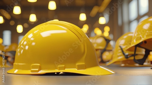 Yellow hard safety helmet hat. Ensuring Worker Safety: Project for Engineers
