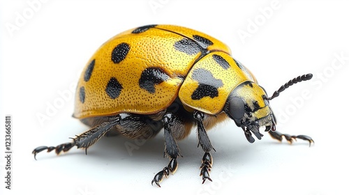 Yellow ladybug close-up on white background. Macro insect photography for science or nature publications