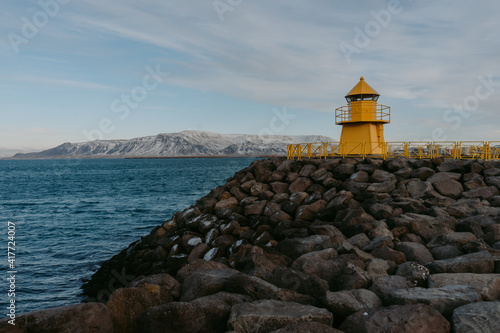 Yellow lighthouse in Reykjavík, Iceland