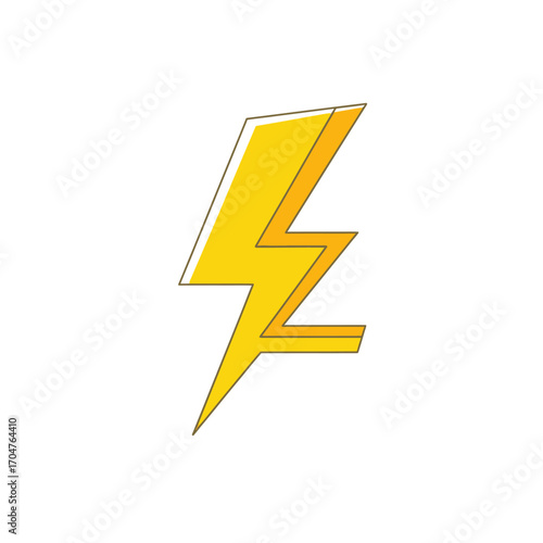 Yellow Lightning Bolt Illustration with Outline and Shadow.