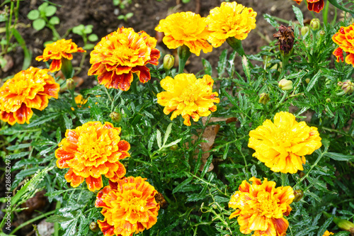 Yellow marigolds after rain