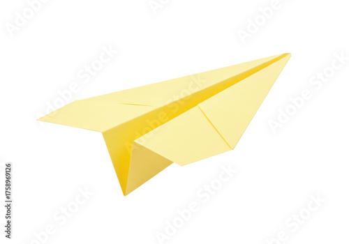 Yellow paper airplane isolated PNG on transparent background, origami toy for travel and childhood themes