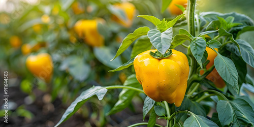 Yellow paprika growing in permaculture garden, sustainable, permaculture, vegetable, agriculture, paprika