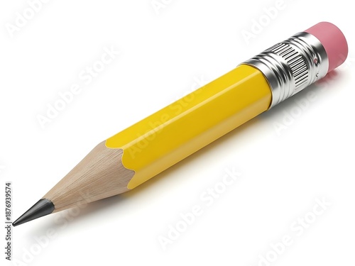 Yellow Pencil with Pink Eraser on Transparent Background