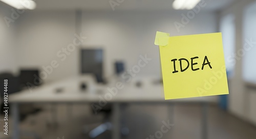 Yellow Post-it or Sticky Note Sparks Bright Ideas in Modern Office. Generative AI.