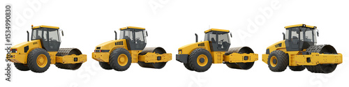Yellow Road Roller Compactor Machine Transparent Background