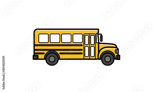 Yellow School Bus Vector Illustration, Education Transportation Icon, Student Pick-up Vehicle in Flat Design Style.