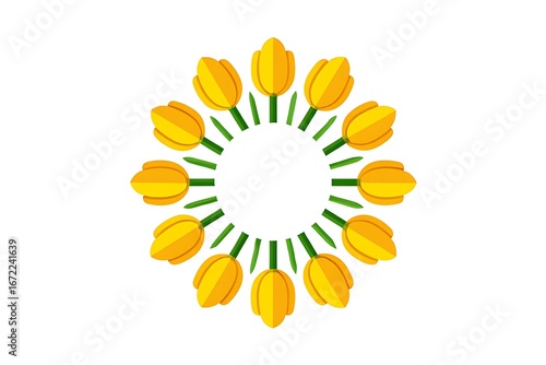 Yellow Tulip Floral Circle Frame Design Element yellow tulips