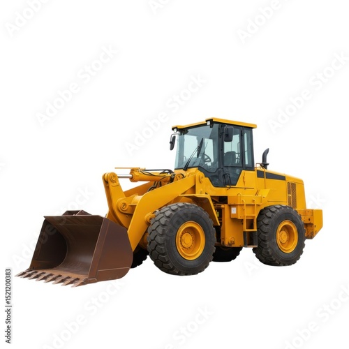 Yellow wheel loader excavator isolated on white background