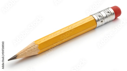 Yellow Wooden Pencil with Sharpened Tip and Red Eraser on White Background