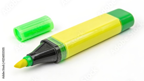 highlighter, pen, marker, yellow, green, stationery, office, supply, writing, tool, colours, bright, vibrant, object, background, white, isolated, closeup, macro, design, element, illustration, texture, graphic, single, product, image, studio, shot, art, visual, item, equipment, plastic, cap, tip, chiseled, broad, stroke, drawing, highlight, annotation