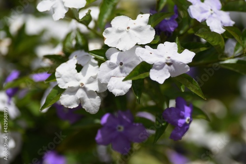 Yesterday-Today-and -Tomorrow flowers. Solanaceae evergreen shrub.