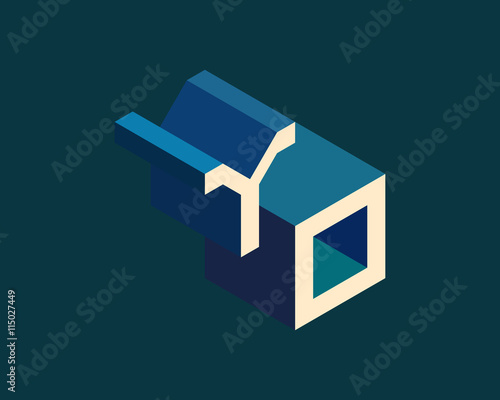 YO isometric 3D letter logo. three-dimensional stock vector alphabet font typography design.