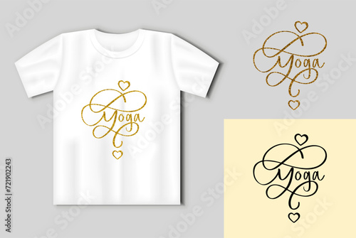 Yoga. Concept inscription typography design logo. about healthy life and fitness. Vector concept with t-shirt mockup