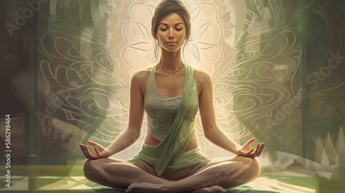 Yoga Meditation Gesundes Leben Konzept für einen Gesunden Geist und einen Gesunden Körper Background Hintergrund Cover Generative AI Digital Art Illustration