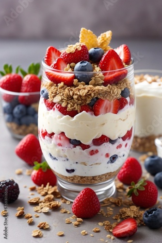 Yoghurt Parfait with strawberries, blueberries, raspberries and Granola