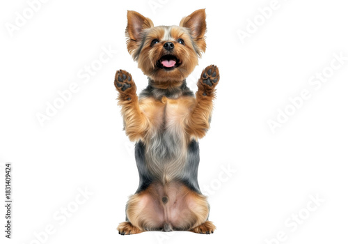 dog, puppy, animal, pet, canino, terrier, yorkshire, small, cute, adorable, fluffy, furry, brown, tan, grey, black, face, eye, ear, nose, mouth, tongue, paw, leg, body, tail, standing, begging, sitting, playful