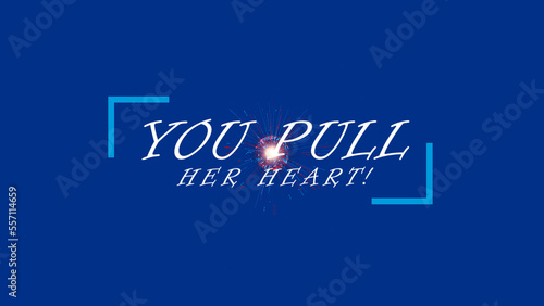YOU PULL HER HEART sign blue background with sparkling ball. Valentine love concept. Original declaration of love. Footage for party. Holiday wishes. Intro outro. 3d render