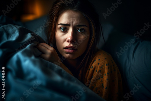 young, adult, woman, home, bed, sad, lost, expression, face, abandoned, fraud, lonely, alone, problem, worry, concern, negative, depression, depressed, accident, mental, psyche, ill, unhealthy, unwell, spiritual, fear, anxious