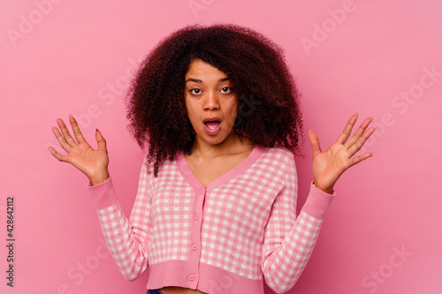 Young african american woman isolated on pink background screaming to the sky, looking up, frustrated.