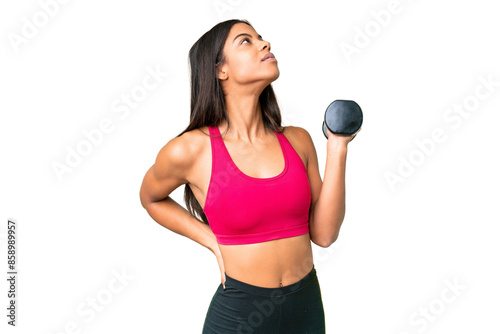 Young African American woman sport woman making weightlifting over isolated chroma key background suffering from backache for having made an effort