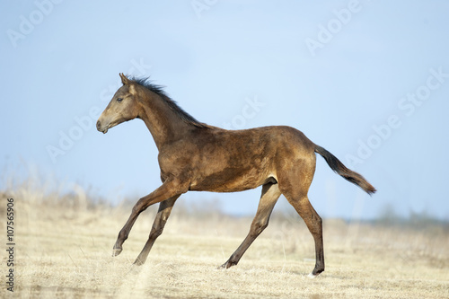 young, colt, run, free, field, spring, early, sky, dry, blue, horse, freedom, wild, nature, yellow, sunny, cloudless